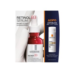 Πακέτο με αντιρυτιδικό συμπύκνωμα ρετινόλης Retinol B3, απαλό νερό καθαρισμού και την απαραίτητη αντιηλιακή πρόστασία ενάντια στην φωτογήρανση.