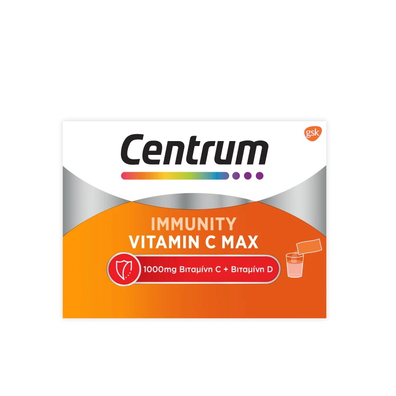Οι φάκελοι Centrum Immunity Vitamin C Max είναι ένα συμπλήρωμα διατροφής που υποστηρίζει το ανοσοποιητικό σύστημα και τον ενεργειακό μεταβολισμό.