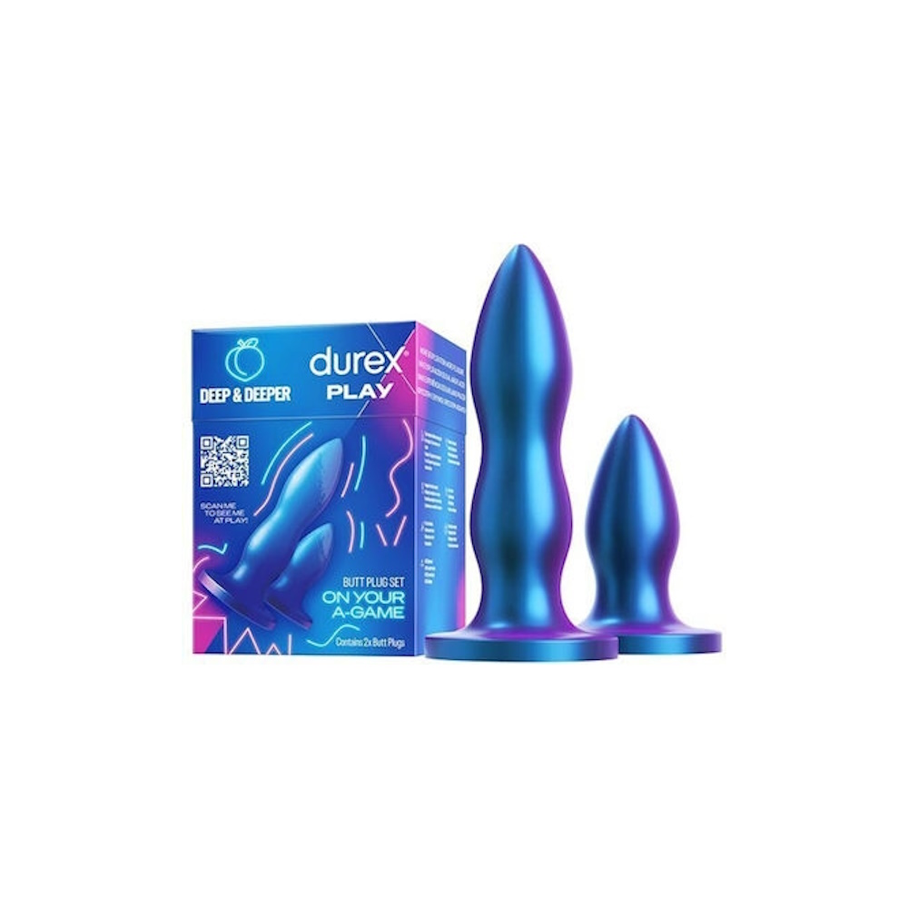 Σετ σεξουαλικού παιχνιδιού από 2 πρωκτικές σφήνες μονού και διπλού επιπέδου, 100% αδιάβροχες.Ειδικά σχεδιασμένο από απαλή σιλικόνη, για να ακολουθεί τις καμπύλες του σώματός σας.Οι πρωκτικές σφήνες Durex But Plug Set, είναι ειδικά σχεδιασμένες για να είναι πιο φαρδιές στη βάση ώστε να αποτρέπουν την εξ ολοκλήρου διείσδυσή τους στον πρωκτό. Εάν χρησιμοποιηθεί σωστά και σύμφωνα με τις οδηγίες χρήσης, κάθε πρωκτική σφήνα μέσα στο σετ μπορεί να εισαχθεί, να χρησιμοποιηθεί και να αφαιρεθεί με ασφάλεια.