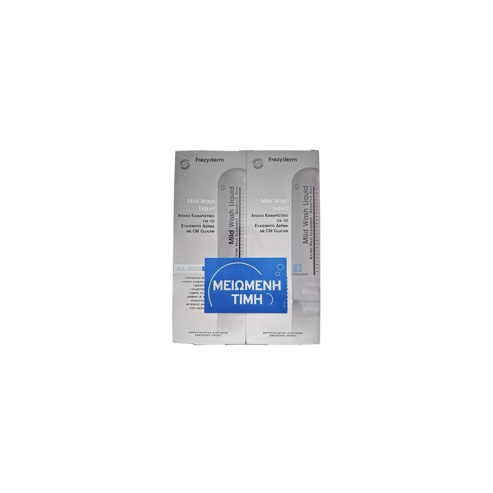 To Frezyderm Mild Wash Liquid είναι ένα απαλό υγρό καθαρισμού για κάθε τύπο δέρματος.´Εχει δροσερή υφή, μαλακτική και ενυδατική δράση.Ενισχύει τη φυσιολογική άμυνα του δέρματος. Περιέχει αλλαντοΐνη, αλόη και πανθενόλη και έτσι προστατεύει από τους ερεθισμούς ακόμα και μετά από αισθητικές επεμβάσεις. Επίσης είναι κατάλληλο και για τον καθαρισμό της ευαίσθητης περιοχής κατά την εμμηνόπαυση και την προεφηβεία. Δεν περιέχει σαπούνι, αρώματα, χρωστικές και parabens