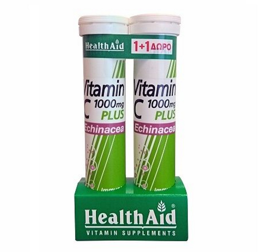 Η Vitamin C plus Echinacea της HealthAid είναι ένας ενισχυμένος συνδυασμός 1gr βιταμίνης C με 22,22mg εκχυλίσματος Echinacea purpurea,