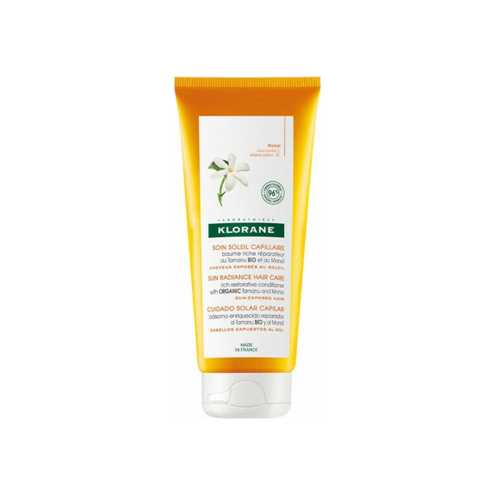 Η μαλακτική κρέμα θρέψης και επανόρθωσης Klorane Soin Soleil Capillaire Baume Riche Reparateur au Tamanu Bio et au Monoi με βιολογικό Tamanu ΒΙΟ και Monoi,
