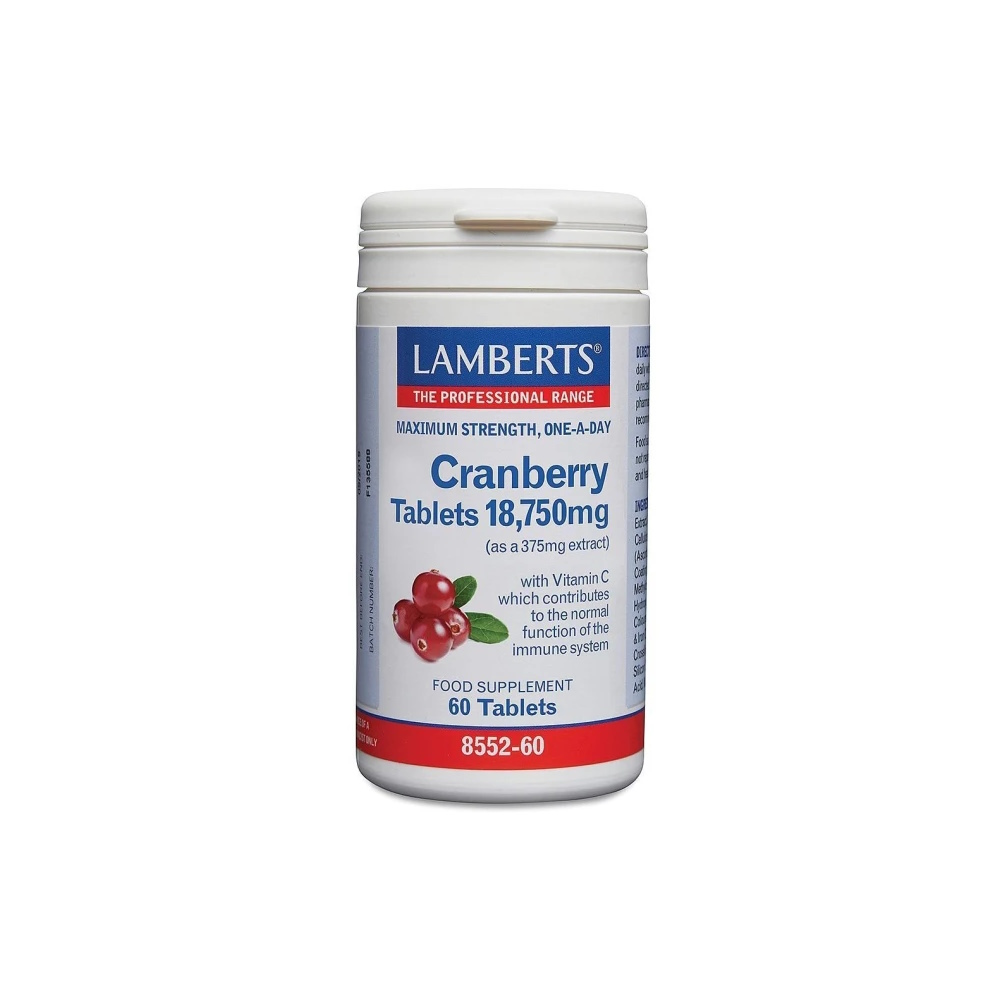 To εκχύλισμα Cranberry είναι ευρέως γνωστό για τα ευεργετικά του αποτελέσματα στη διατήρηση της υγείας του ουροποιητικού συστήματος, ιδιαίτερα στις γυναίκες. Το εκχύλισμα Cranberry είναι πικρό στη γεύση με αποτέλεσμα σε πολλά σκευάσματα που κυκλοφορούν στην αγορά να προστίθεται ζάχαρη, αποδίδοντας έτσι πολλές θερμίδες. Στη Lamberts το Cranberry λαμβάνεται από φρέσκους ώριμους καρπούς (cranberries), οι οποίοι, στην αρχή, πλένονται καλά και απολυμαίνονται για την απομάκρυνση ανεπιθύμητων συστατικών. Εν συνεχεία ο χυμός που παράγεται από την επεξεργασία των καρπών, τρέπεται σε συνθήκες χαμηλής πίεσης και θερμοκρασίας σε σκόνη. Το τελικό στάδιο παραγωγής περιλαμβάνει τον ψεκασμό της σκόνης με ξηρό αέρα οδηγώντας στην παρασκευή του τελικού προϊόντος που δεν περιέχει ζάχαρη. Η όλη διαδικασία παρασκευής του σκευάσματος διασφαλίζει την δραστικότητα του τελικού προϊόντος και την δυνατότητα χορήγησης σε άτομα που ακολουθούν δίαιτες με συγκεκριμένους θερμιδικούς περιορισμούς.