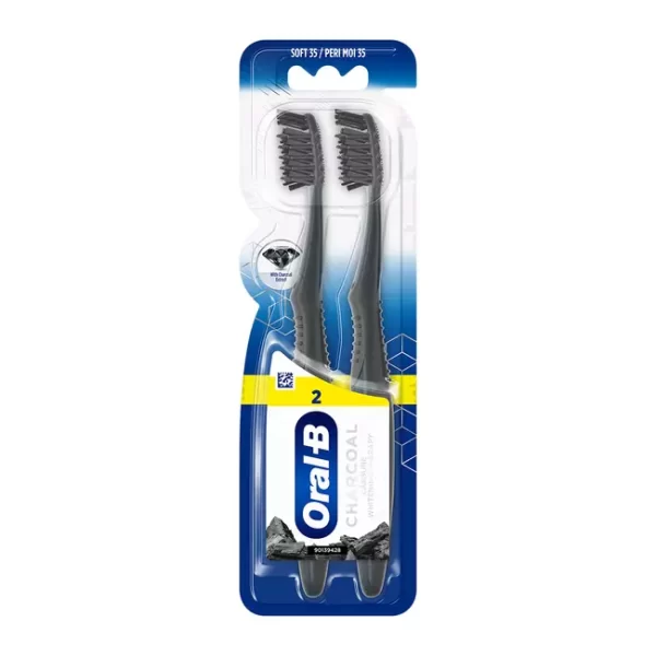 Οδοντόβουρτσα με μαλακή σκληρότητα της εταιρείας Oral-B σε μαύρο χρώμα, η οποία καθαρίζει ήπια και αποτελεσματικά τα δόντια και τα ευαίσθητα ούλα από υπολείμματα τροφίμων, βακτήρια και πλάκα, χωρίς να τα τραυματίζει ή να επηρεάζει το σμάλτο των δοντιών.