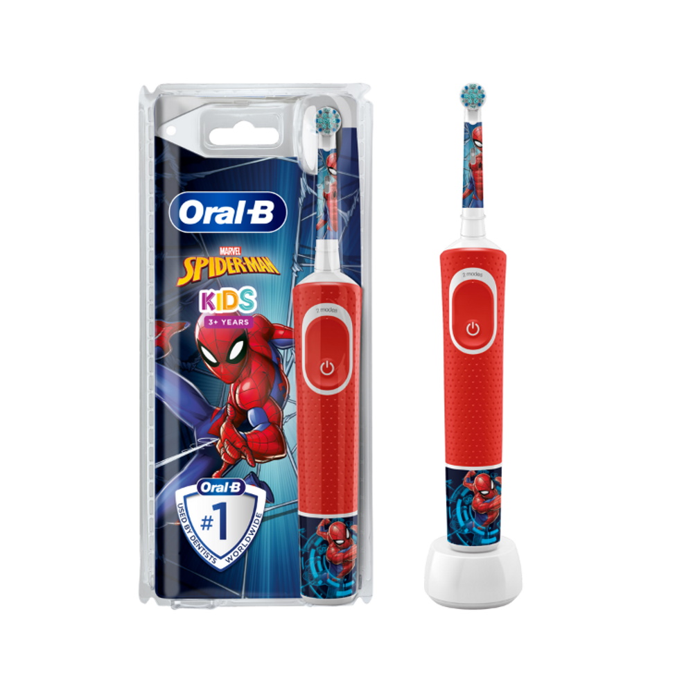 Επαναφορτιζόμενη Ηλεκτρική Οδοντόβουρτσα Spiderman 3+ της Oral-B από την Braun, ειδικά σχεδιασμένη για να είναι απαλή με τα παιδικά δόντια!