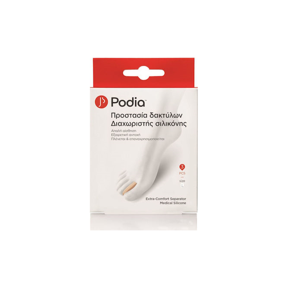 Οι Διαχωριστές δακτύλων ποδιού της σειράς Podia απορροφούν την πίεση και την τριβή μεταξύ των δακτύλων καταπραΰνοντας τους ερεθισμούς.Ανακουφίζουν τον πόνο σε κάλους ανάμεσα στα δάκτυλα των ποδιών.