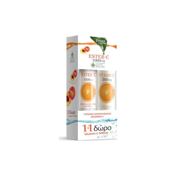 Συμπλήρωμα διατροφής σε αναβράζοντα δισκία με γεύση ροδάκινο-φρούτο του πάθους και με γλυκαντικό από το φυτό στέβια.Η βιταμίνη C συμβάλλει στη φυσιολογική λειτουργία του ανοσοποιητικού συστήματος, στην προστασία των κυττάρων από το οξειδωτικό στρες, ενώ αυξάνει την απορρόφηση του σιδήρου.