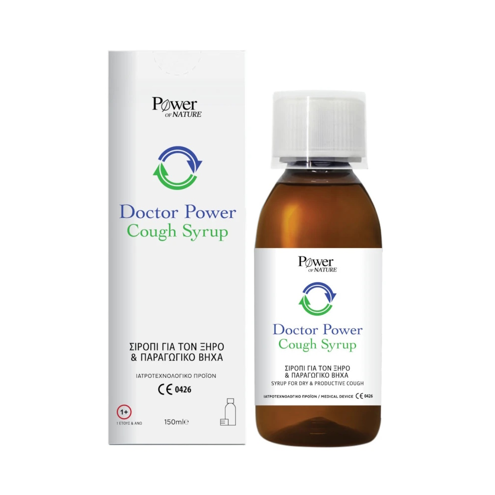Το Doctor Power Cough Syrup είναι ένα ιατροτεχνολογικό προϊόν με δράση που βασίζεται στην έντονη βλεννοπροσκολλητική ιδιότητα των συστατικών του. Μπορεί να χορηγηθεί για να καταπραΰνει τόσο τον ξηρό, επίμονο βήχα, όσο και τον παραγωγικό, προάγοντας τη φυσιολογική απόχρεμψη. Η υψηλή ποσότητα πολυσακχαριτών και μελιού που περιέχει, δρα σχηματίζοντας μια προστατευτική μεμβράνη που καταπραΰνει τα συμπτώματα και καλύπτει τον τραυματισμένο και φλεγμονώδη βλεννογόνο. Με αυτόν τον τρόπο προστατεύει τον βλεννογόνο από μολυσματικούς ή ερεθιστικούς παράγοντες, επιταχύνει τη διαδικασία επούλωσης του βλεννογόνου και συμβάλλει στη διακοπή του βήχα.