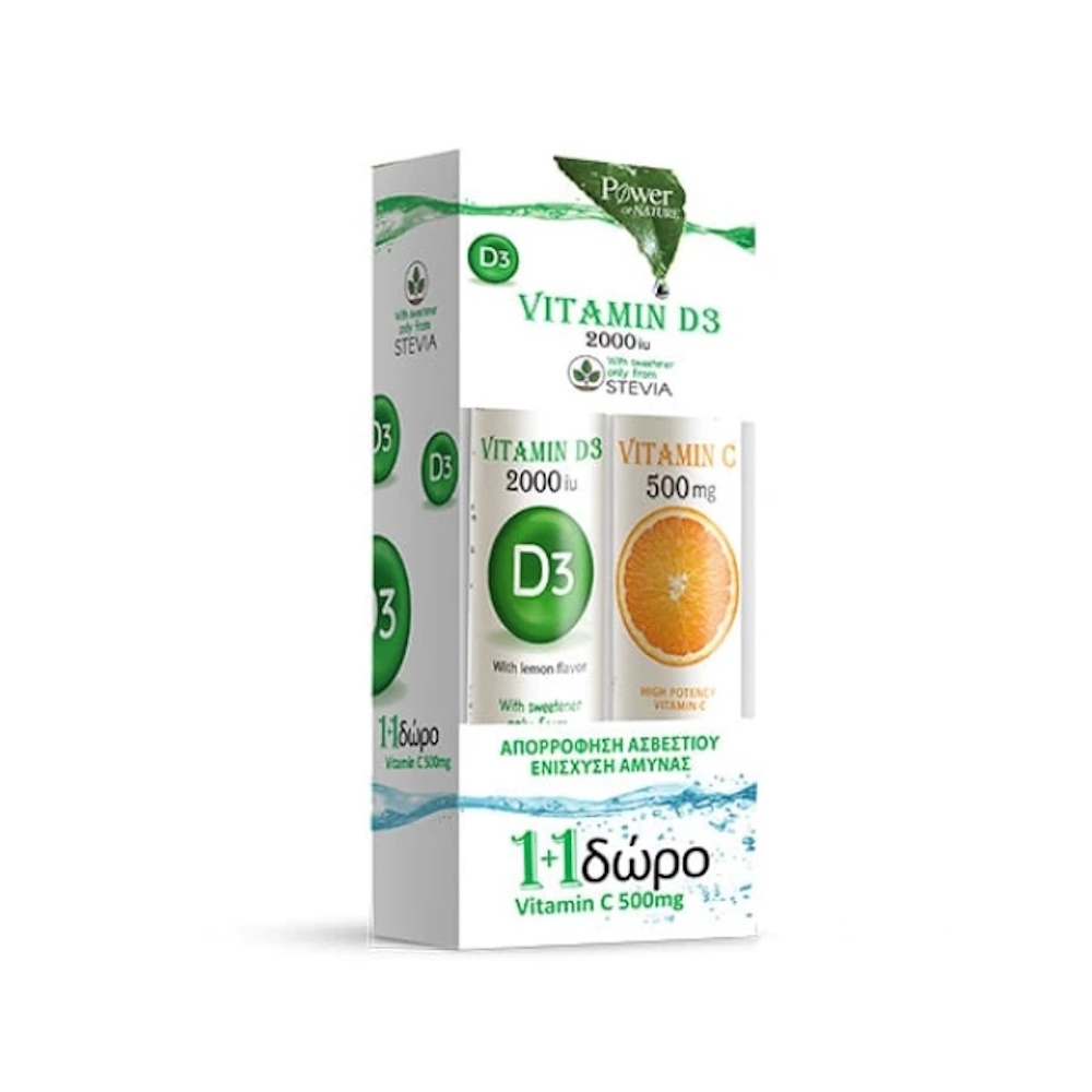 Βιταμίνη D3 2000iu σε αναβράζουσα μορφή με γεύση λεμόνι. Συμβάλλει στη φυσιολογική λειτουργία των μυών και του ανοσοποιητικού συστήματος, στην απορρόφηση του ασβεστίου, την υγεία των οστών και δοντιών. Με γλυκαντικό από το φυτό στέβια. Σε συσκευασία με δώρο 1 τεμάχιο ίδιου προϊόντος.