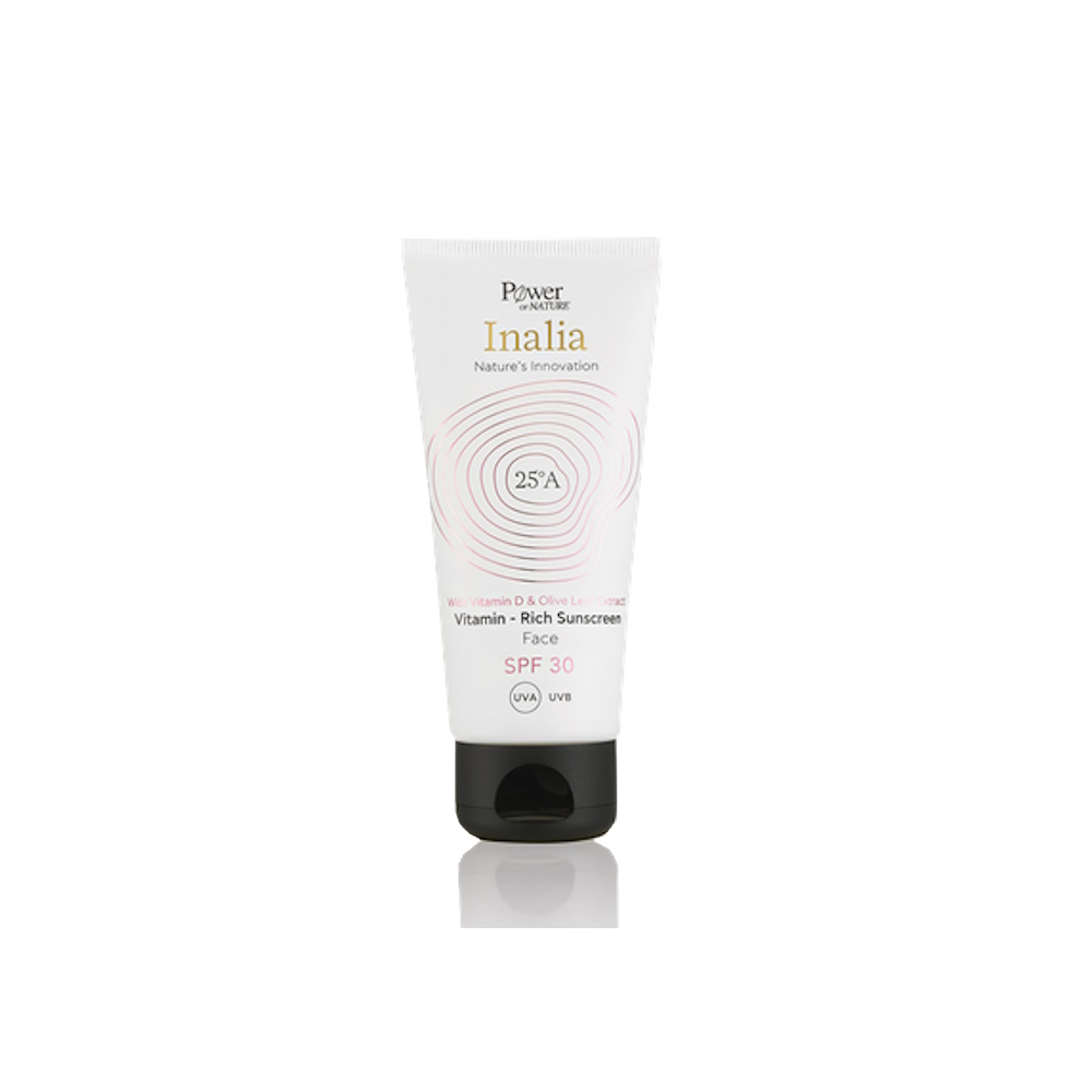 Η αντηλιακή κρέμα προσώπου SPF 30 Inalia Vitamin – Rich Face Sunscreen Cream είναι εμπλουτισμένη με υαλουρονικό οξύ για βαθιά ενυδάτωση.Η αντηλιακή κρέμα προσώπου SPF 30 Inalia περιέχει βιταμίνη Ε που έχει αντιοξειδωτική δράση, η οποία σε συνδυασμό με τη βιταμίνη D αυξάνει την παραγωγή του κολλαγόνου, χαρίζοντας ελαστικότητα στην επιδερμίδα.