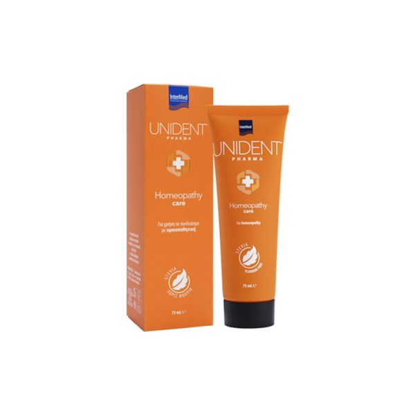 Η Unident Pharma Homeopathy Care είναι μια οδντόπαστα καθημερινής χρήσης χωρίς φθόριο για χρήση σε συνδυασμό με θεραπείες ομοιοπαθητικής.Η απουσία μενθόλης, φθορίου και γεύσεων σε αυτή τη σύνθεση οδοντόκρεμας ευθυγραμμίζεται με τις αρχές της ομοιοπαθητικής, οι οποίες τονίζουν τη χρήση ελάχιστων, φυσικών συστατικών. Προστατεύει από τερηδόνα, πλάκα και ουλίτιδα ενώ ενισχύει φυσικά την αντιμικροβιακή άμυνα της στοματικής κοιλότητας.